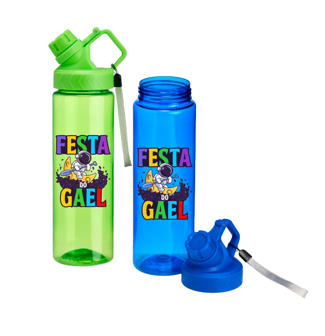 Descrição: Squeeze de plástico com capacidade máxima de até 740ml. Com tampa rosqueável e articulada, o squeeze acompanha uma alça de nylon para facilitar o transporte, tornando-a uma peça prática e indispensável para uma hidratação regular para o dia a dia.