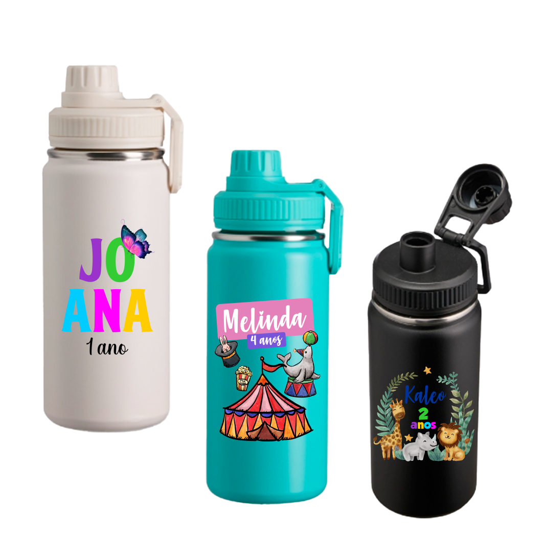 Descrição: Garrafa térmica inox de capacidade de até 550ml. A pintura eletrostática garante uma cor duradoura e acabamento de maior qualidade. Sua parede dupla e isolamento à vácuo mantém o líquido conservado por mais tempo e permite o uso da garrafa sem a necessidade de se preocupar em entrar em contato direto com o calor interno ou vazamentos. Além disso, a garrafa conta com uma tampa rosqueável e uma alça que facilita o transporte para qualquer lugar.
