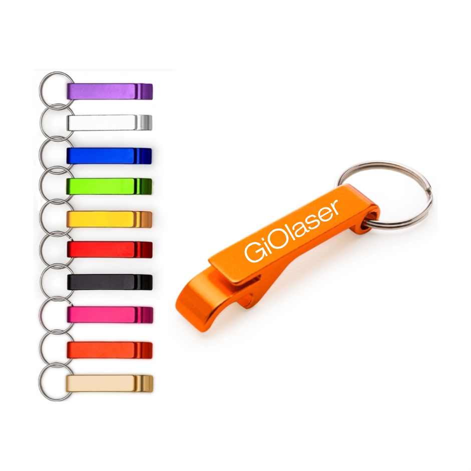 Descrição: Chaveiro metálico com abridor de garrafas e argola de ferro niquelado.