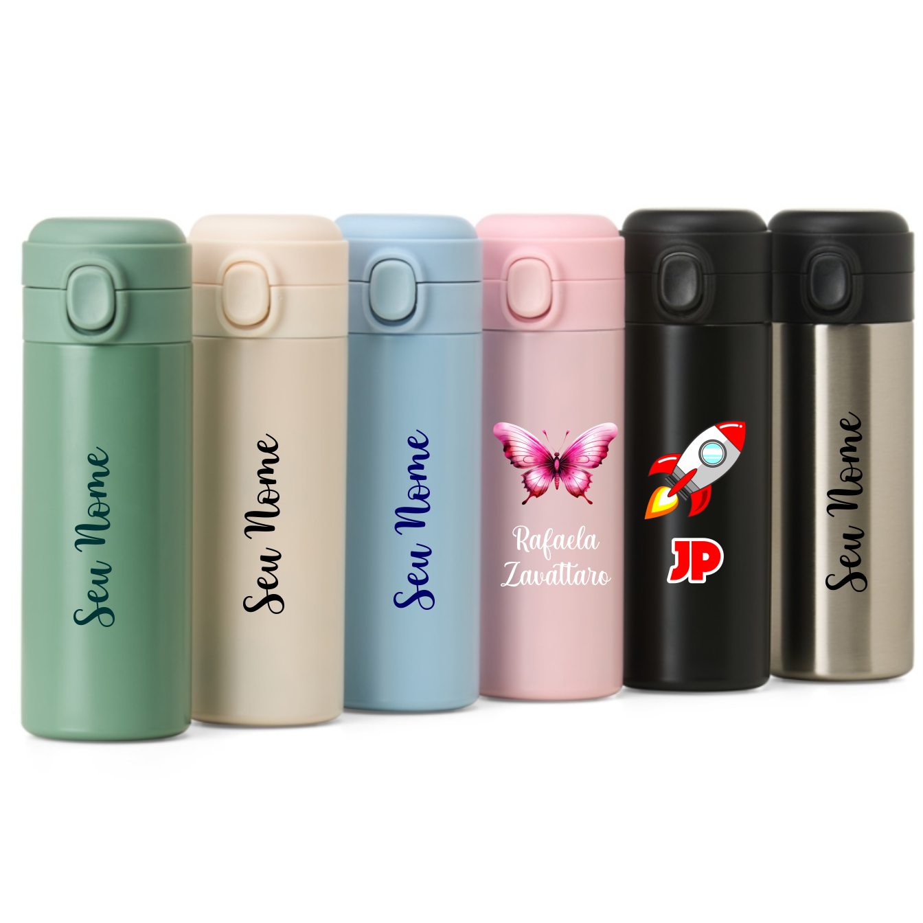 Descrição: Garrafa térmica em inox com parede dupla, capacidade de 400ml. Tampa com botão central para abertura e borracha interna para vedação.